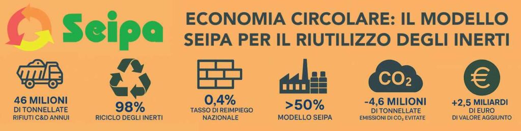 Il Gruppo Seipa, attivo dal 1968 nella gestione e valorizzazione dei rifiuti inerti, ha dimostrato che la transizione circolare è possibile: nei suoi impianti il tasso di sostituzione degli aggregati arriva al 52%, un risultato perfettamente in linea con gli obiettivi del Piano Nazionale di Ripresa e Resilienza (PNRR) e del Piano d’Azione Europeo per l’Economia Circolare.