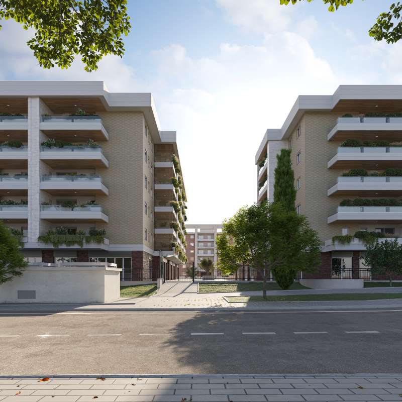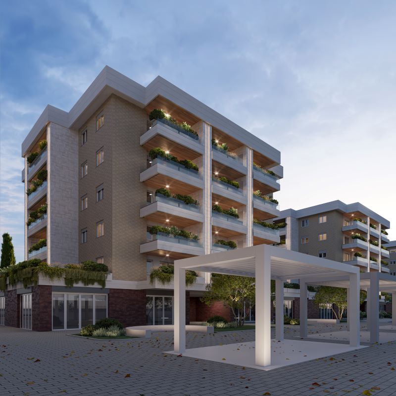 Urban District rappresenta l’evoluzione coerente del linguaggio architettonico di Città Verde: un progetto che coniuga materiali della tradizione – muratura a cassetta rivestita in mattone da cortina, laterizio faccia a vista, legno naturale, gres effetto travertino – con soluzioni estetiche e tecnologiche contemporanee. Le facciate alternano ritmo e trasparenze, grazie a nuovi balconi con parapetti in cristallo e rivestimenti lignei. Le tamponature sono in muratura a cassetta con isolanti naturali ad alte prestazioni, mentre i setti verticali tra le unità, illuminati a LED da fonti rinnovabili, migliorano privacy e definizione volumetrica. Come ogni comparto di Città Verde, anche Urban District mantiene coerenza col masterplan ma introduce una propria identità cromatica e formale, nel segno di un’architettura urbana sostenibile, elegante e durevole.